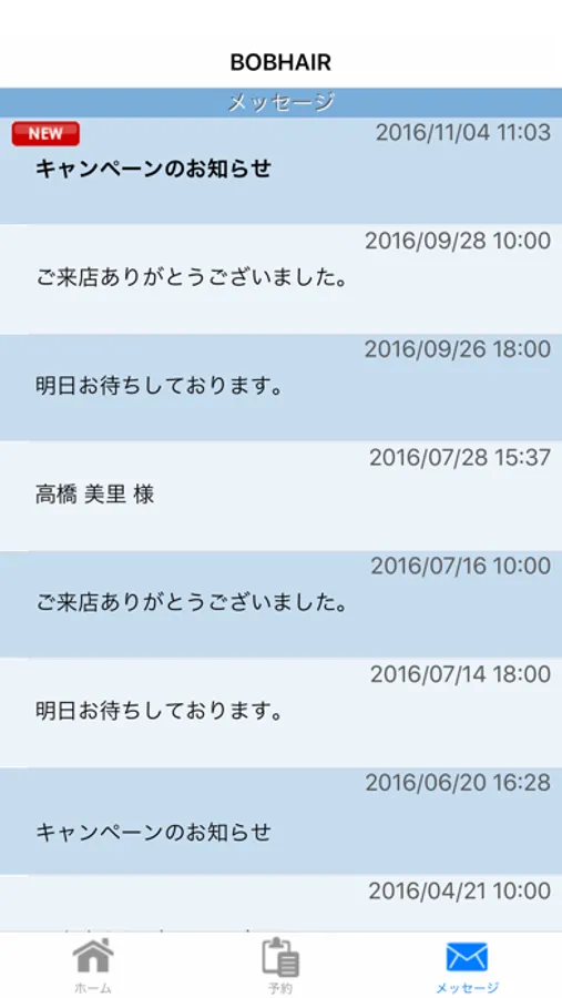 ・ご予約日お知らせメッセージ配信