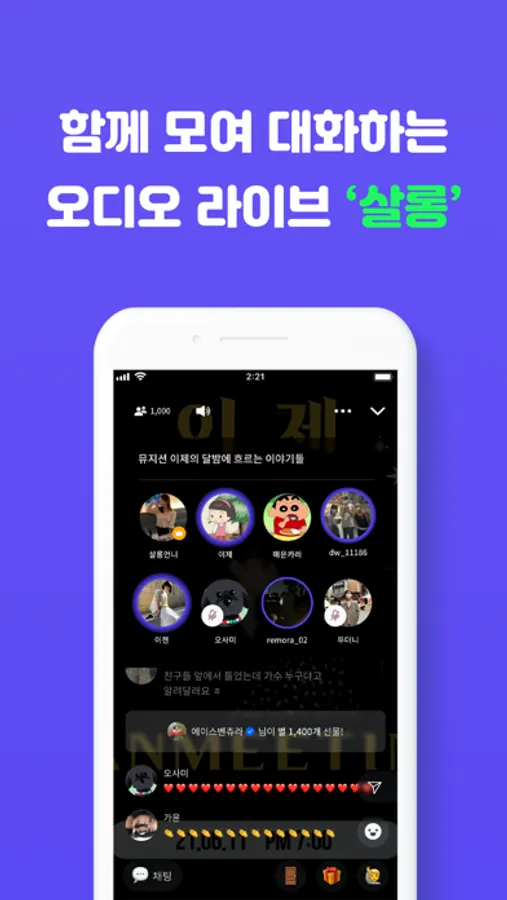 누구든지 '살롱(Salon)'을 개설하여 라이브로 소통할 수 있습니다.