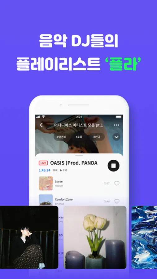 플라는 음악 플레이리스트를 라디오 형태로 감상할 수 있는 콘텐츠에요.