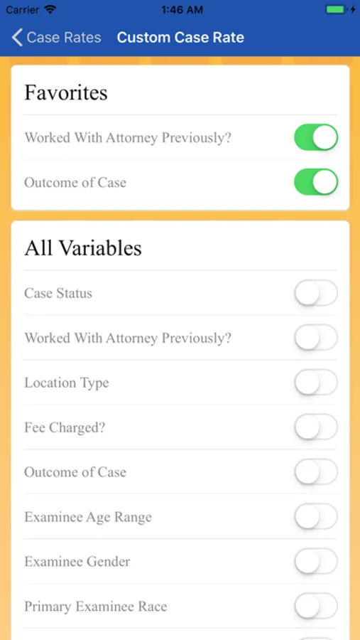 Case rate will calculate base rates for your forensic opinions and associated variables. For the first time, you’ll have an easy, mobile, and immediate way to input whatever case-related variables are most important to you – and then calculate base rates accordingly. For example, you’ll be able to immediately calculate how many defendants you’ve opined as competent versus incompetent, and then you’ll be able to further determine how other variables affect that proportion – gender, ethnicity, diagnoses, severity of charges, referral source, or more than 20 other variables.