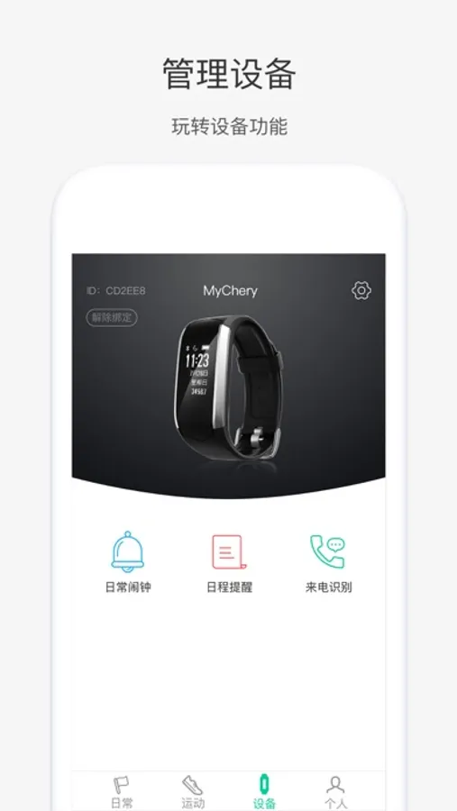 奇瑞穿戴App专为奇瑞汽车用户打造,配合智能手环钥匙,您还可以: