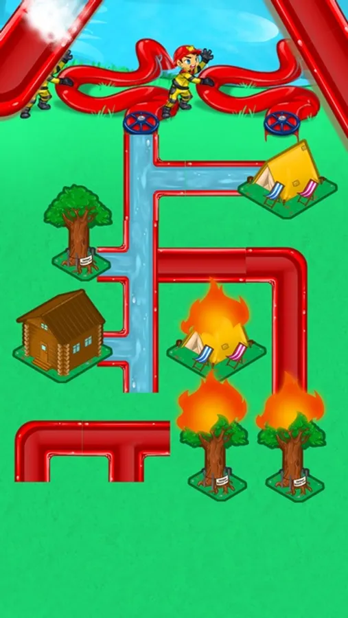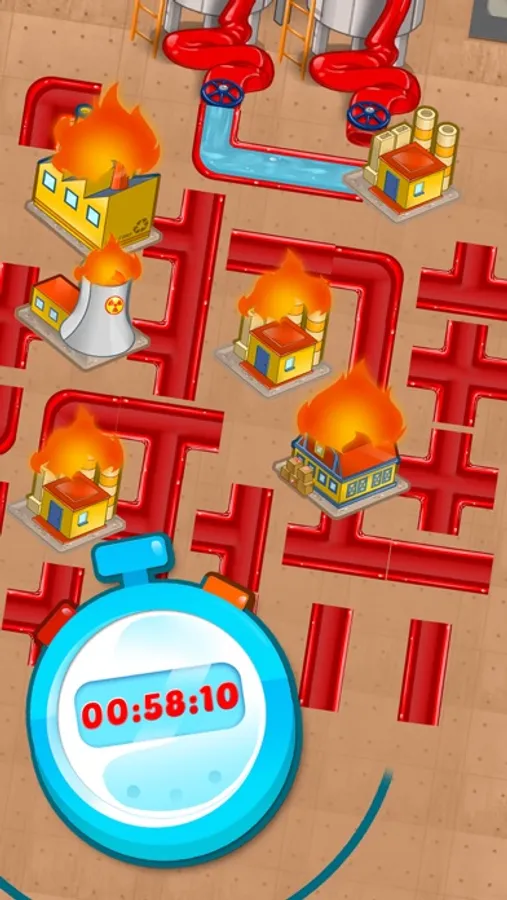 A big fire has started in the land and is starting to burn cities. Firemen have started to put out the fire but the water pipes system is really old and it is broken in some areas. They sent you to fix the pipes, the leaks and save the cities.