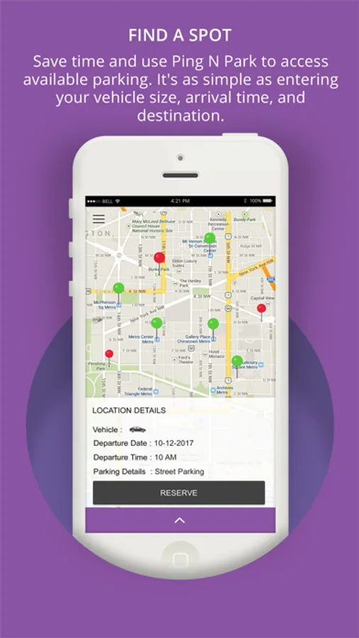 Ping N Park is a street parking app that allows users to share the location and the availability time of open sparking spaces in high demand areas.