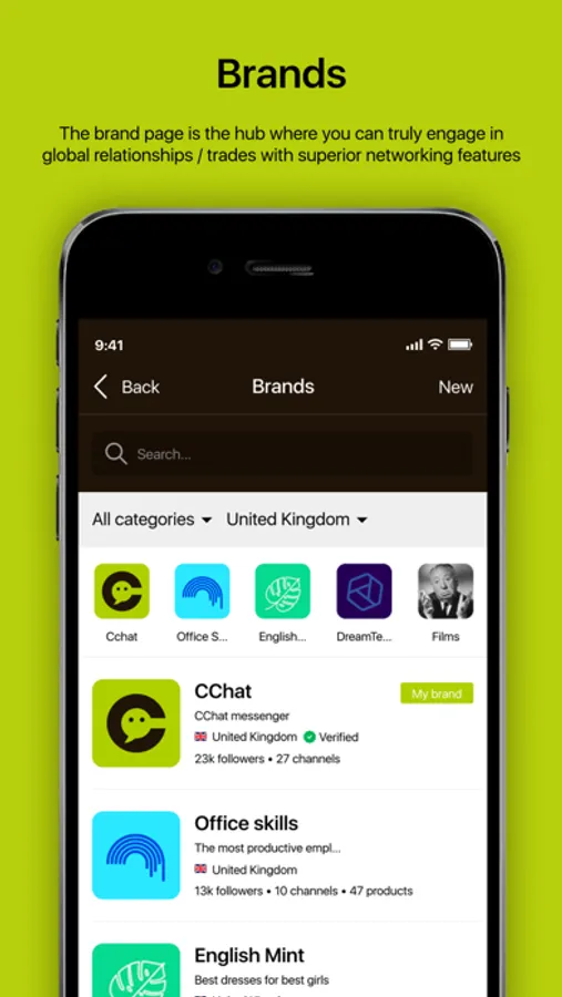 • BRAND: build your own mini-sites and showcase your products and services through the brand global open directory.