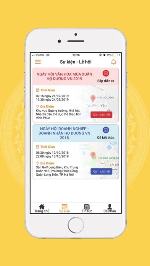 - Xem thông tin đầy đủ các sự kiện - lễ hội đang diễn ra, sắp diễn ra, đã kết thúc