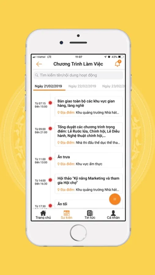 - Danh sách chương trình làm việc, các hoạt động được sắp xếp theo ngày, giờ, địa điểm chi tiết