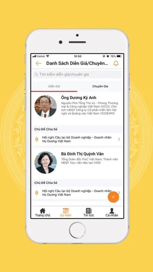 - Cung cấp thông tin khách mời, diễn giả, chuyên gia họ Dương tham gia chia sẻ tại sự kiện. Đặc biệt, người sử dụng có thể gửi câu hỏi tới diễn giả trực tiếp trên ứng dụng