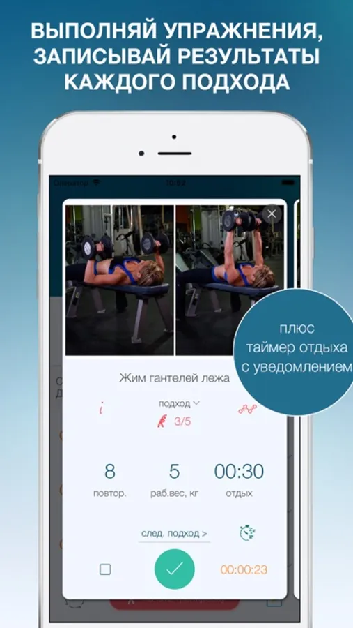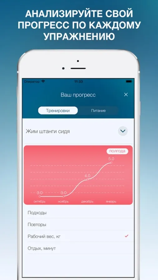 - отслеживание прогресса по каждому выполненному вами упражнению, который позволит анализировать и составлять более эффективную программу тренировок