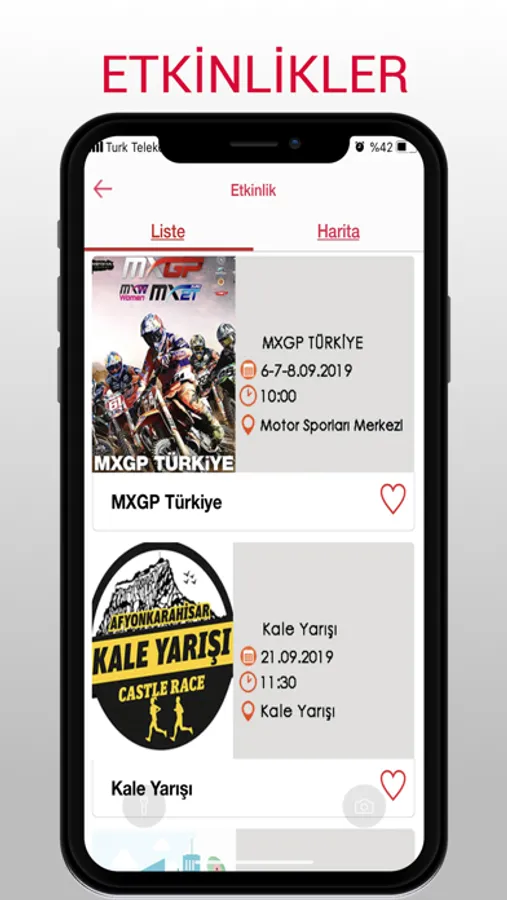 • İlin tamamındaki büyük, küçük bütün etkinlikleri bir arada görebilir, tarih sırasına göre listeleyebilir veya etkinlik alanının konumuna görüntüleyebilirsiniz. Nasıl katılacağınıza bakıp, etkinlik alanına yol tarifi alabilirsiniz.