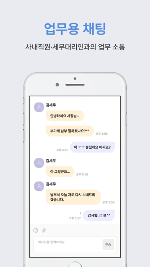 - 사내직원·세무대리인과의 실시간 업무용 채팅!!