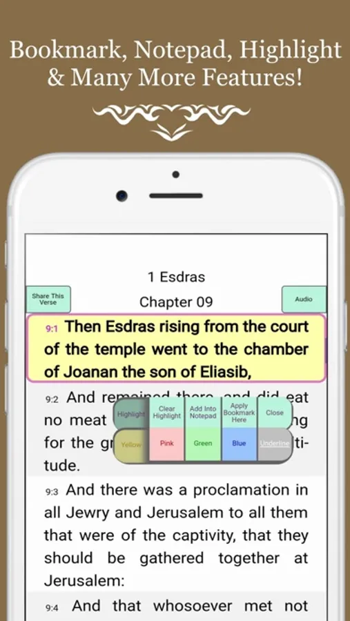 + Notepad: one click on any verse number to copy and paste that verse into the notepad.