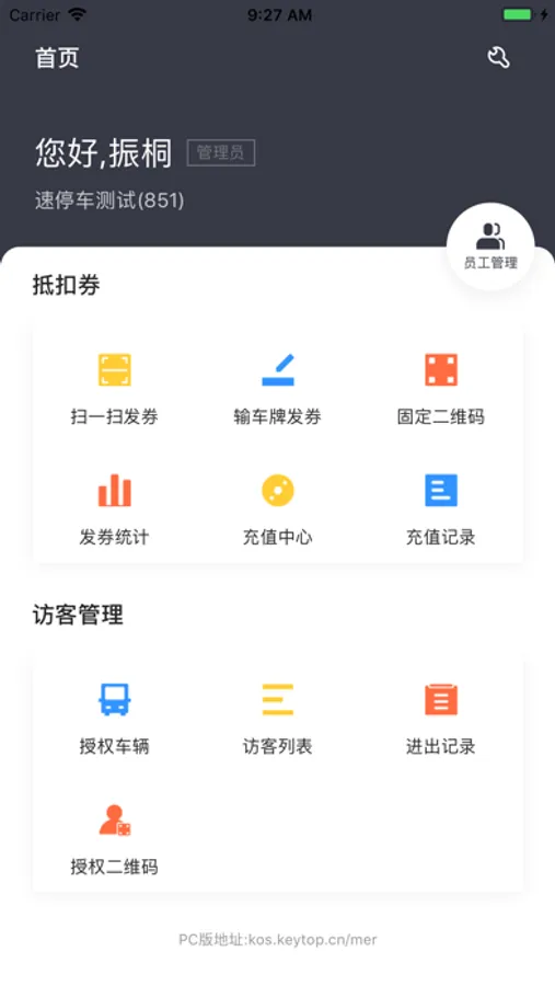 科拓商户助手是用于商家向消费者发放停车抵扣券的APP,商家可以通过出示二维码或输入车牌号向消费者发券,二维码具有一次性扫码和固定二维码两种,商家可根据自身需求来选择和设置。