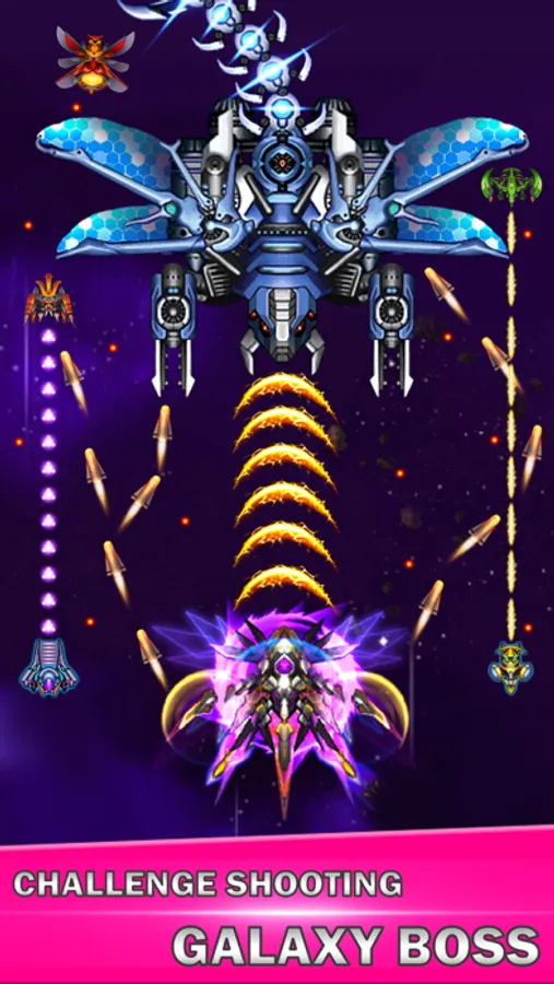 It is most exciting thing that challenging the boss, with waves and waves bullet to attack you, only touch screen to avoid and shoot. Skilled operation is very important, protect your spaceship safe and accumulate damage.