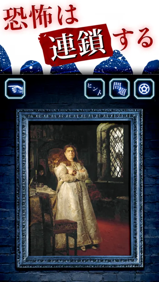 問題文をお読み頂き、絵画に秘められた意味がわかると怖い箇所をタップで選択し、「回答」ボタンを選択してください。