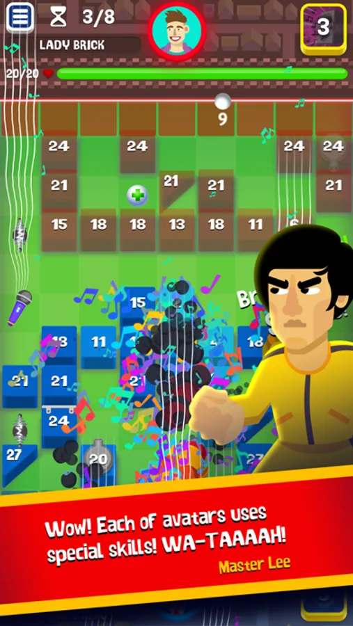 Have fun, experiment and use various ball power-ups to turn the tide of the battle in the least expected moment. But remember one thing: do not let the bricks touch your end of the arena - it will hurt you!
