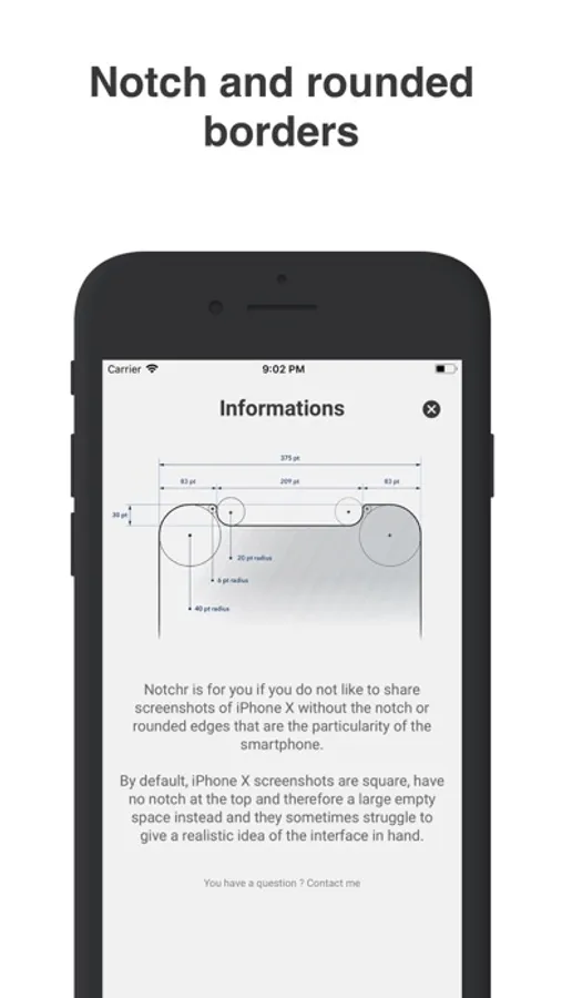 By default, iPhone X screenshots are square, have no notch at the top and therefore a large empty space instead and they sometimes struggle to give a realistic idea of the interface in hand.