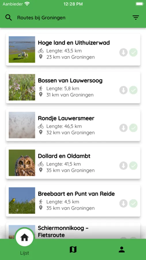 Wandel- en fietsroutes speciaal ontwikkeld om bijzondere landschappen, flora en fauna te zien. Rijkelijk voorzien van foto’s en vogelgeluiden. Je kiest zelf uit over welke thema’s je informatie wilt (landschap, ecologie, vogels, flora, vlinders, etc). De informatie is aangepast aan het seizoen. In de route-specifieke veldgids vind je herkennings- en waarnemingstips van alle genoemde soorten. Dé app om zelf flora en fauna te ontdekken op de Wadden.