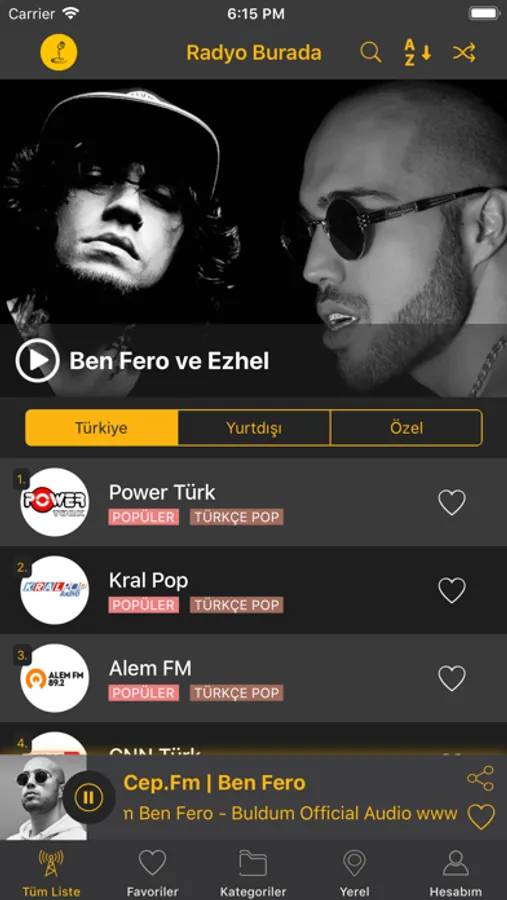 Sevdiğiniz bütün sanatçılara ait şarkıları, kendi özel kanallarında cep fm farkıyla dinleyebilirsiniz.