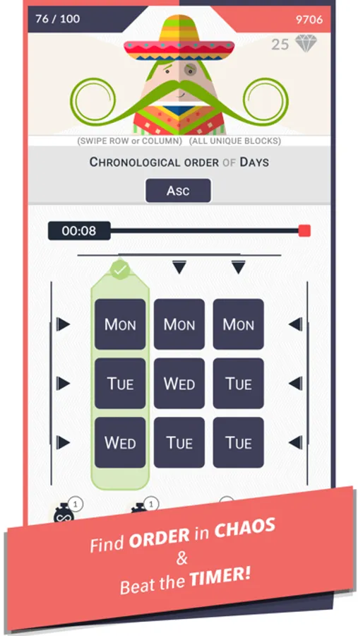 Mr. Mustachio builds upon the gameplay of the evergreen word search puzzles & puts a little spin on that!. Use your power of observation to search the grid for the row or column which matches a given rule & a corresponding value! Of course, we added a time limit & threw in some colours to make things interesting!