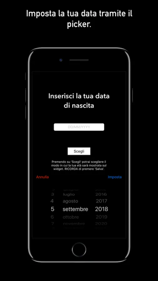L'interfaccia è semplice e di facile utilizzo, apri l'app, scegli la data dal picker, e scegli il formato in cui vuoi che ti venga mostrata, ed il gioco è fatto!