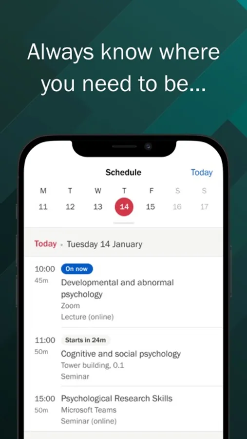 A calendar containing your personalised teaching timetable helps you know where you need to be, how to get there, and when you need to prepare.