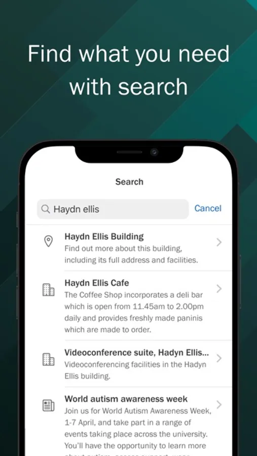 Chwiliwch am leoliadau o amgylch y Brifysgol, cyfleusterau, gwybodaeth gyffredinol a gwasanaethau defnyddiol eraill o amgylch Caerdydd.