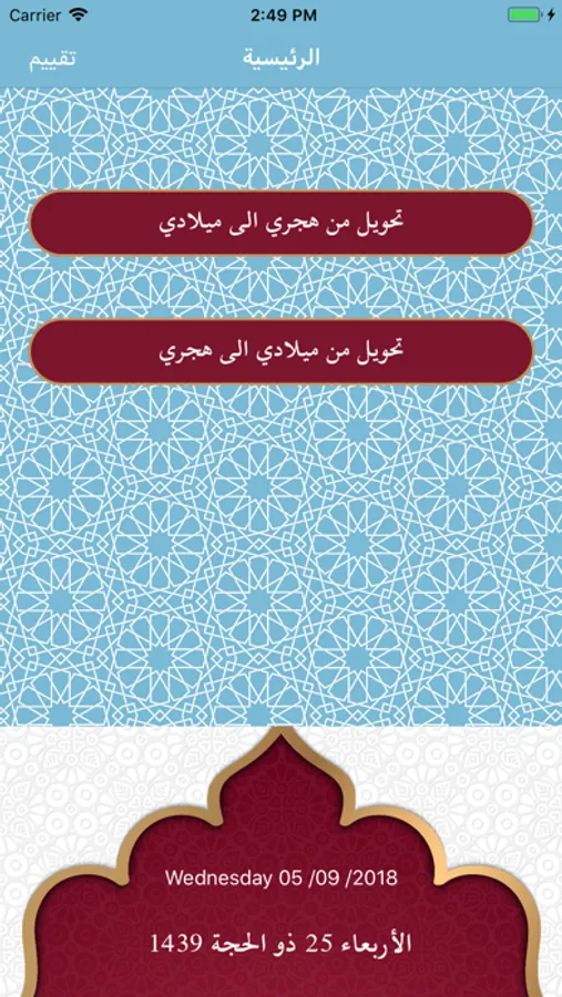 التطبيق يقوم بتحويل بين التقاويم التالية : هجري او ميلادي تطبيق سهل الاستعمال وبسيط وبدون انترنت .