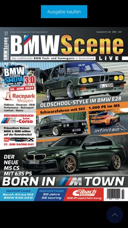 Seit mehr als 17 Jahren begleitet BMW SCENE LIVE die Liebhaber und Fans der Marke BMW und erzählt die Geschichte der individuell gestylten oder originalrestaurierten Autos und ihrer Besitzer. Fünfmal im Jahr präsentiert die Redaktion auf 100 Seiten angesagte Trends, testet die Modell- Neuheiten aus München, stellt Produkte vor und informiert direkt aus der Szene.