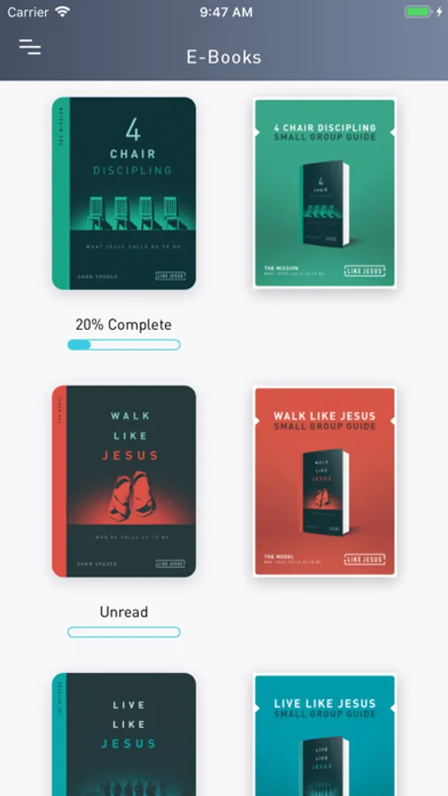 The Like Jesus app contains three modules with e-books and videos (some filmed in Israel) by Dr. Dann Spader, founder of Sonlife and GYI, to look at The Mission of Jesus (4-Chair Discipling e-book), The Model of Jesus (Walk Like Jesus e-book) and The Methods of Jesus (Live Like Jesus e-book).