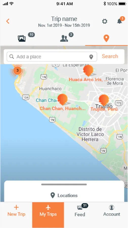 Remember and share your trips: places, pictures, videos, Facebook, and Instagram posts. From you and the people who traveled with you.