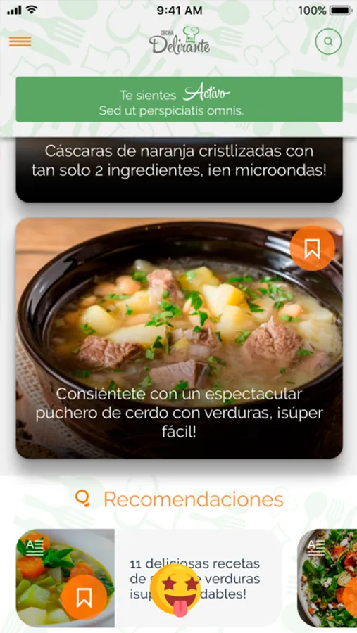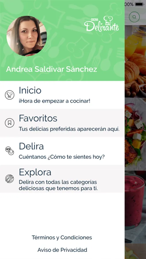 La única aplicación de recetas que identifica cómo te sientes y qué delirio es el que necesitas para invitarte a prepararlo.