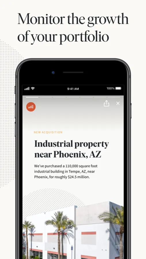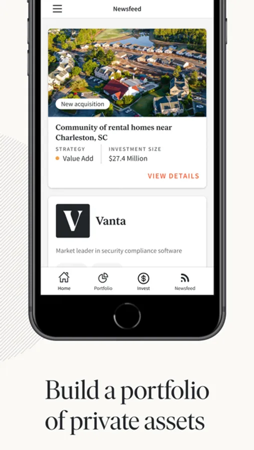 Within minutes of investing, you can watch as your dollars are diversified. Follow along in your newsfeed as each asset in your investment portfolio progresses, including developments like new construction updates, occupancy reports, market data trends, and project completions.