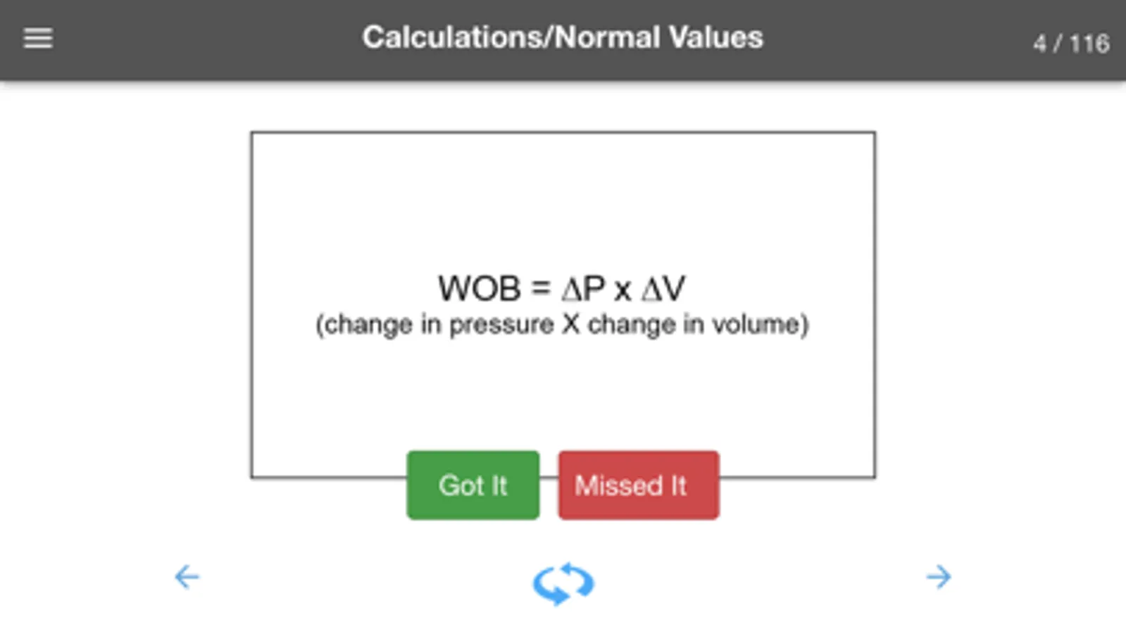 Each card has a stated formula or normal value on the front side of the card with the corresponding correct response on the back side of the card.