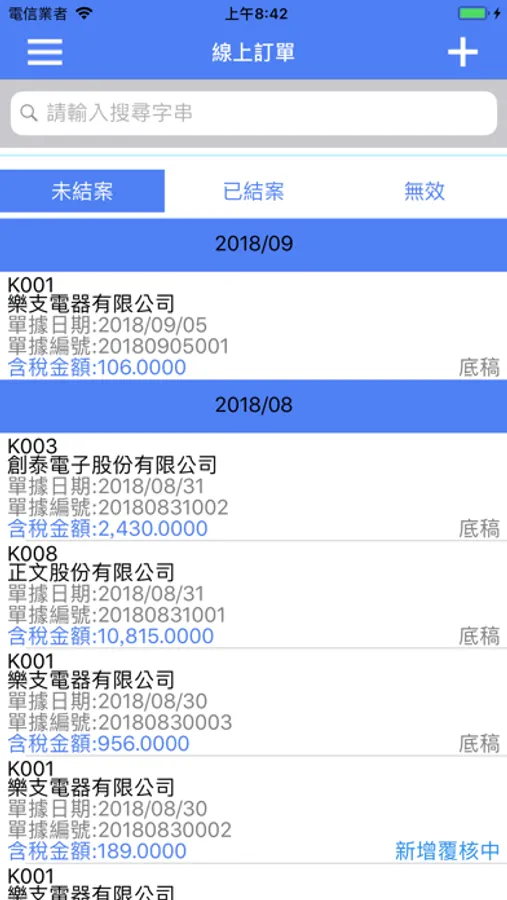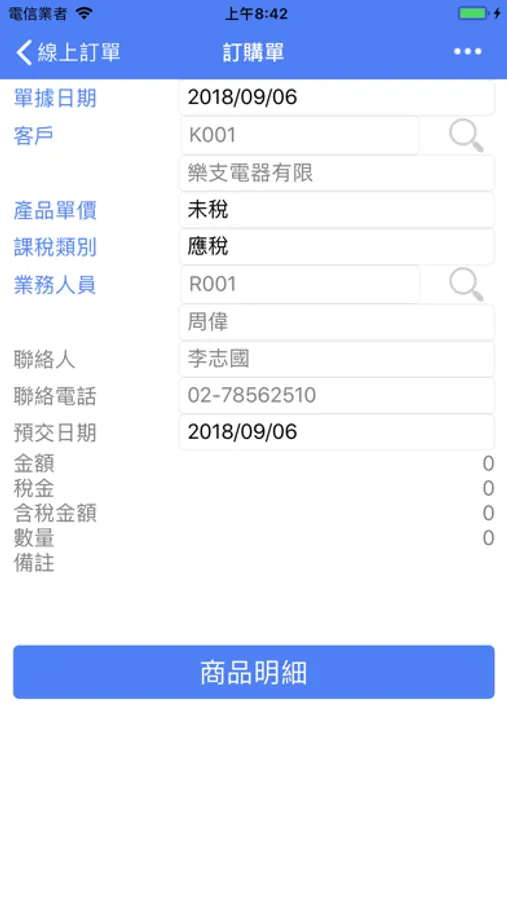正航APP線上訂單整合正航系列ERP系統上的銷售訂單資料,讓你可以在線上進行銷售訂單的查詢與新增作業。