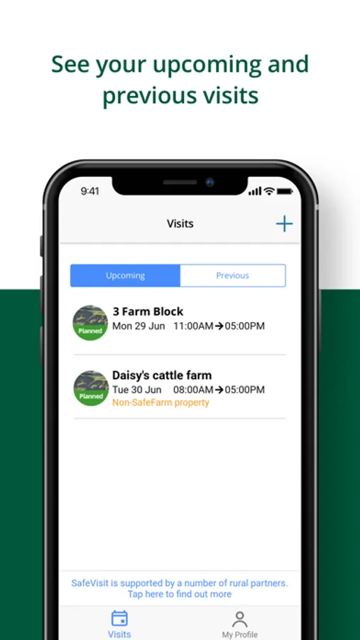 The SafeVisit mobile app helps farmers and growers manage their Health and Safety obligations when they have visitors on-farm. Working in conjunction with the SafeFarm mobile app and web system, SafeVisit allows guests to request permission to enter property and provides the ability for farmers to supply all the necessary Health and Safety documentation required. This can include a site map, hazard register and the ability to contact somebody during their visit.
