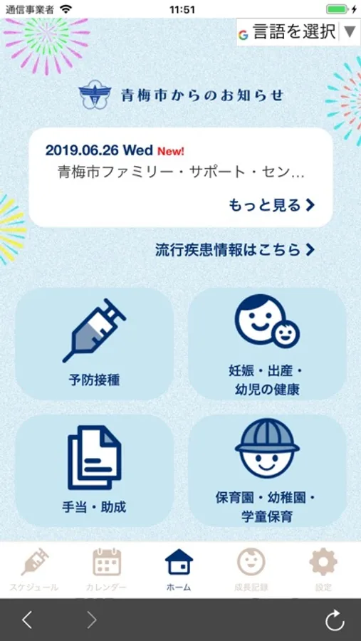 青梅市の子育て応援アプリ「ゆめうめちゃんの子育て・予防接種ナビ」