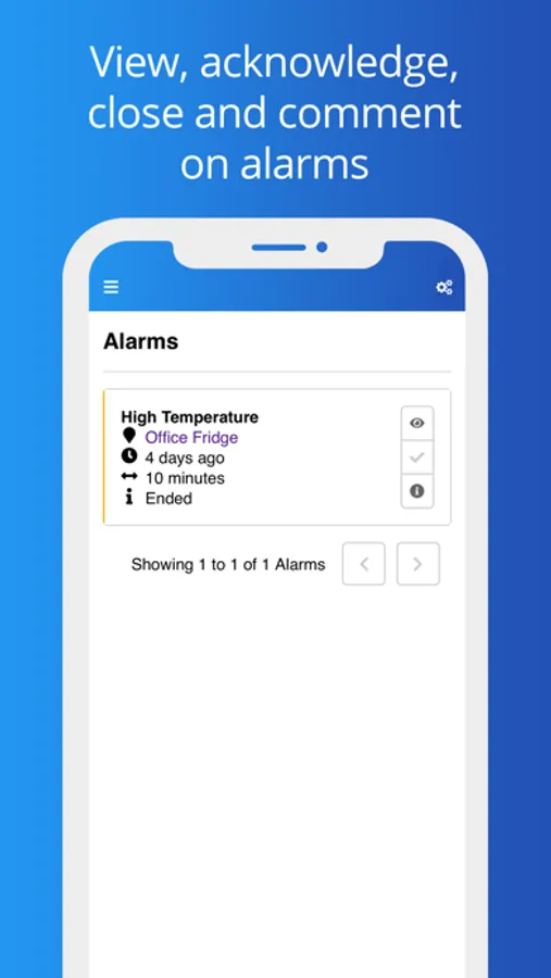 - perform actions on alarms, such as acknowledging, closing and adding notes