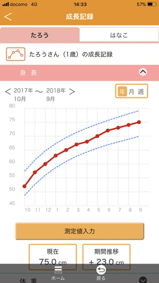 お子さんの身長、体重を記録しグラフ表示します。