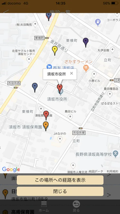 公共施設や医療機関の施設名、住所、電話番号などから施設を検索し、施設詳細情報や地図の表示、目的地までの経路検索も確認できます。