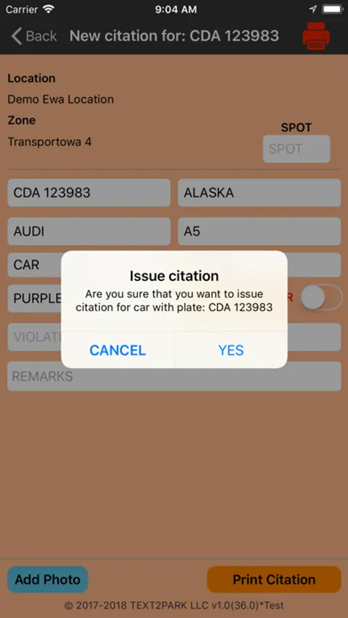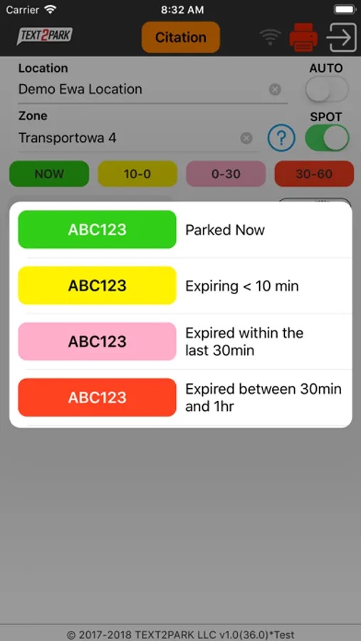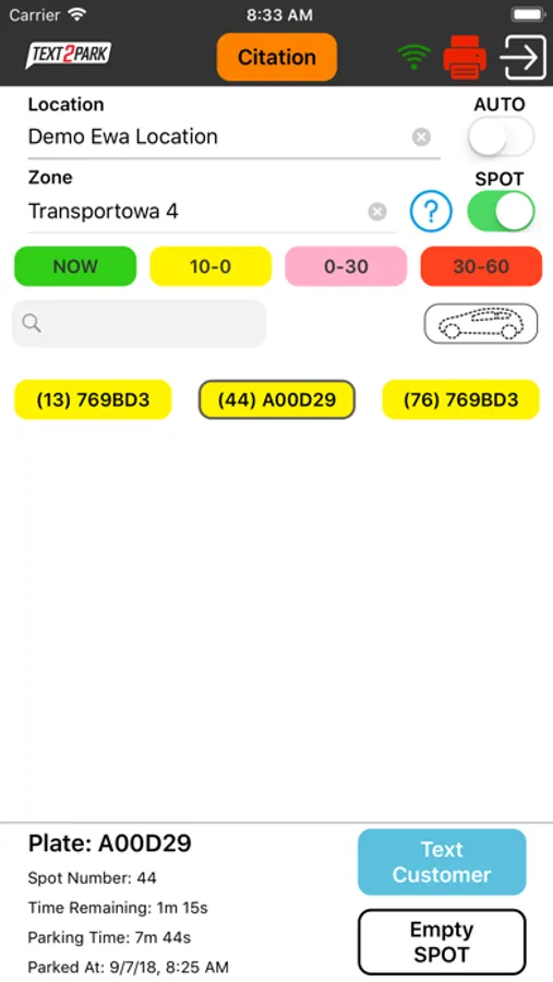 - Option to issue and print a citation in case the parking time has expired or payment has not been made.