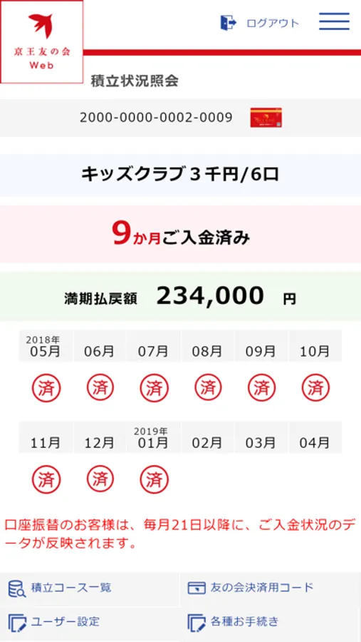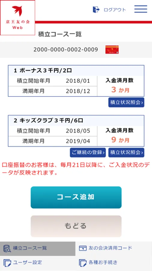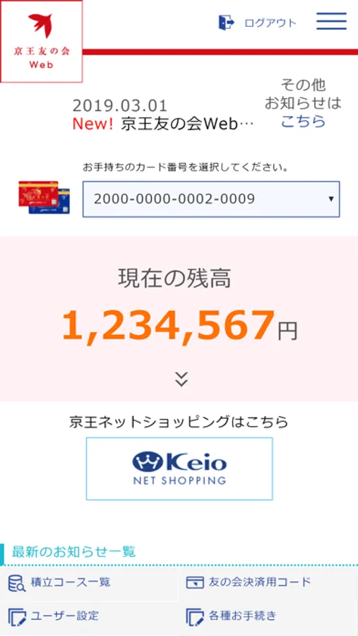 京王友の会は、毎月のお積み立てで、積立期間に応じたボーナスをプレゼントさせていただき、京王百貨店でご利用いただけるおトクなカードをご案内しています。このアプリでは、カードの残高やお積立状況の照会など便利な機能をスマホでご利用いただけます。