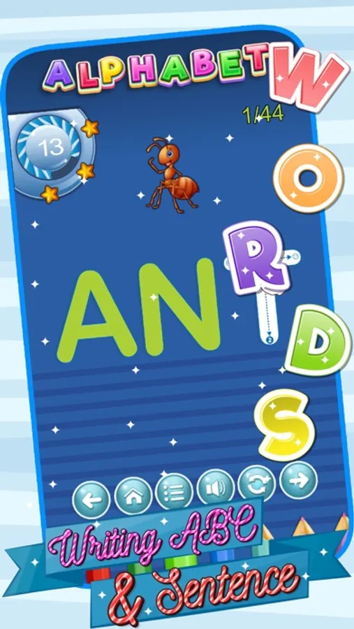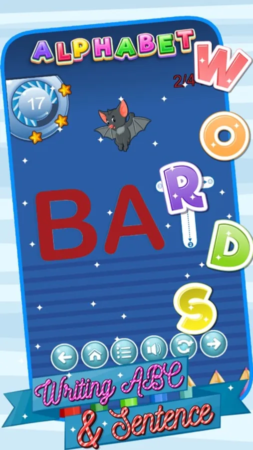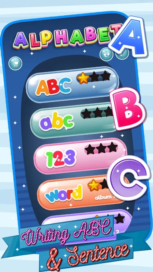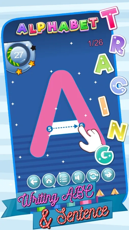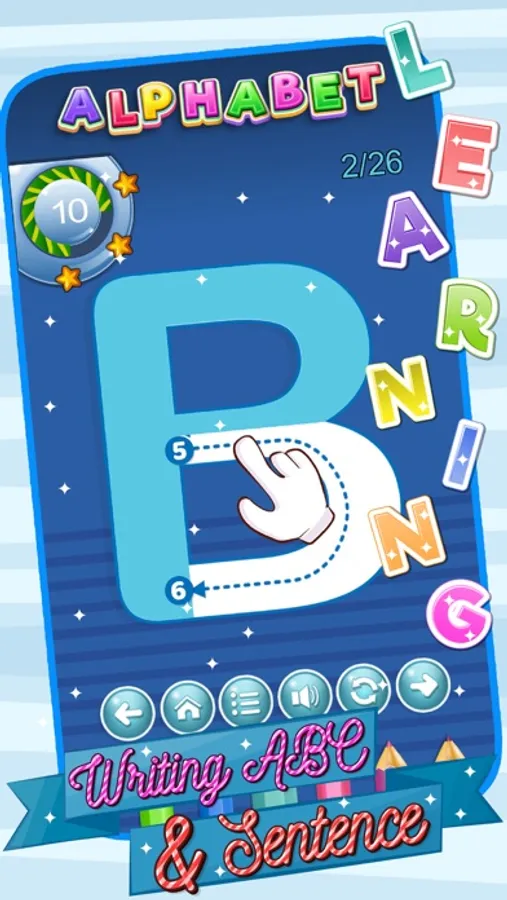 The game includes content writing of English letters, uppercase & lowercase characters, digits 0-9 ,English Sentence.