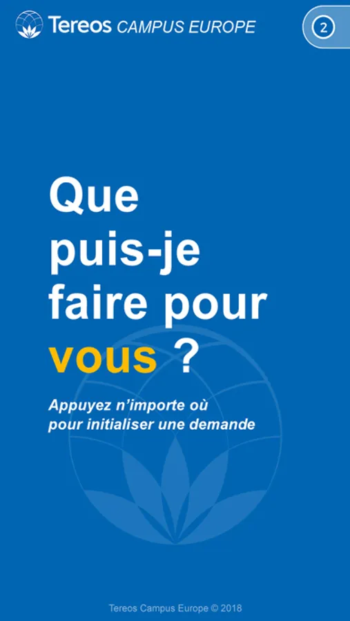 Bienvenue sur l’application des services aux collaborateurs du Tereos Campus Europe. Grâce à cette application vous pouvez nous faire part de toutes vos demandes de services ou de dépannages..