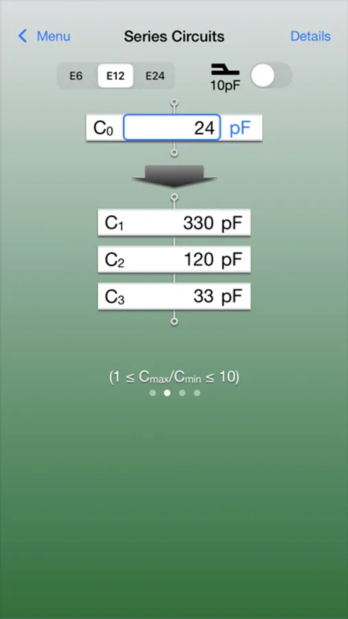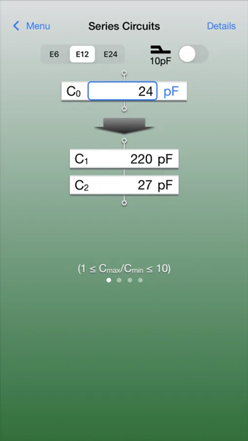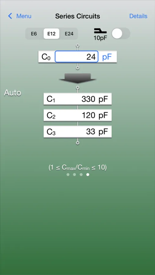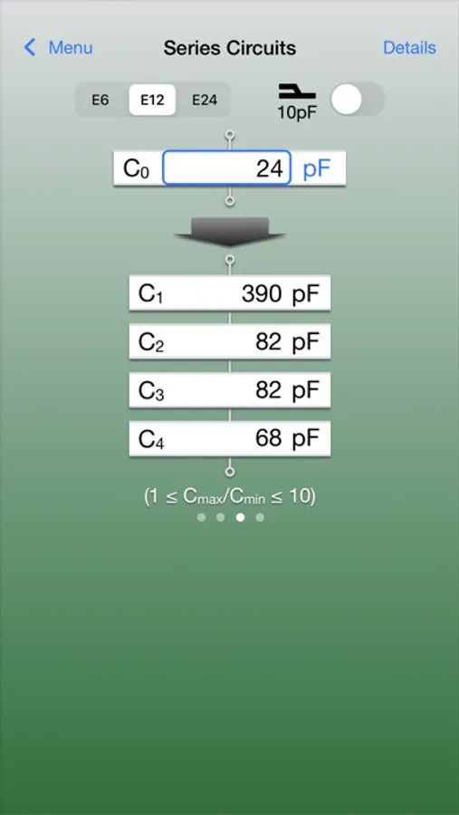 Calculated capacitance values are displayed with the following E-series number specified either.