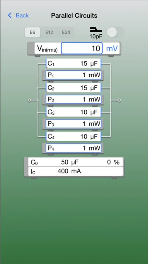 This application can calculate current and power of each capacitor on entered ESR (Equivalent Series Resistance) values.