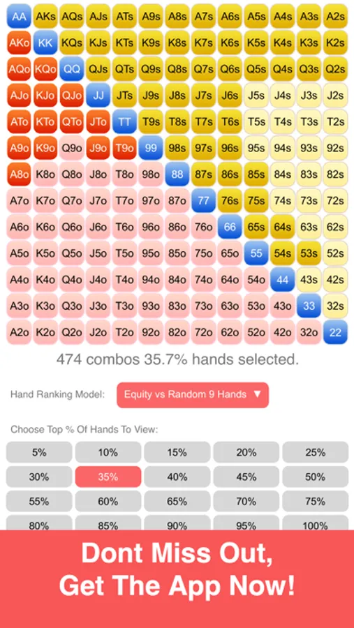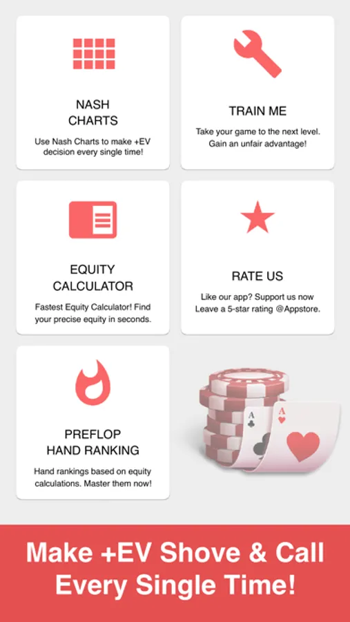Preflop+ is THE best app to improve as a poker player. GTO preflop charts pre-loaded (no internet connection required) to make +EV shove, calls and rejams based on Nash equilibrium.
