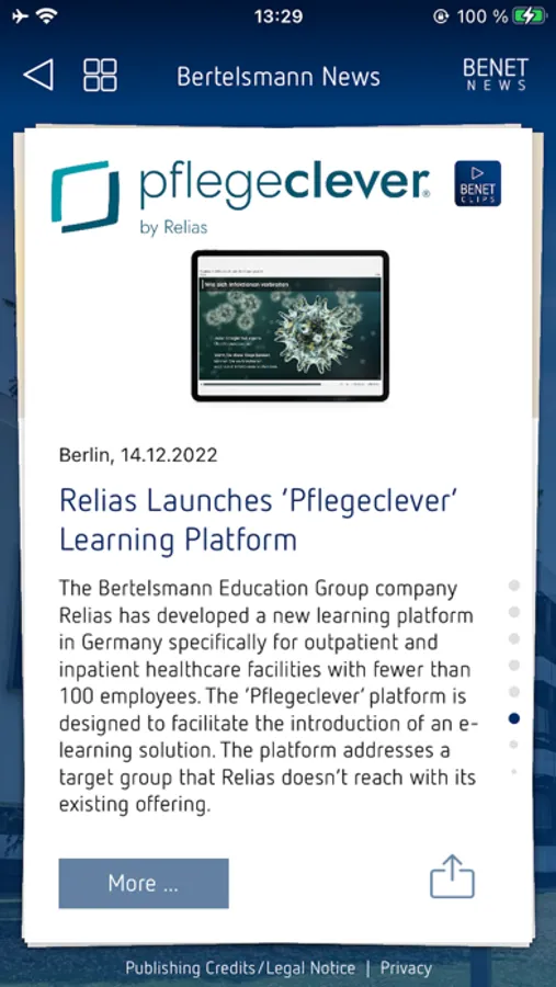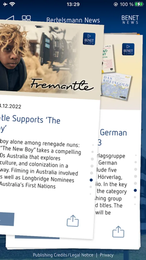 • The Bertelsmann News app is available in two languages: German and English. The language selected on the smartphone is automatically adopted as the language setting.