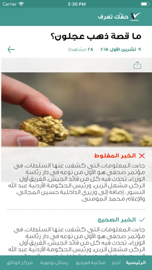هي منصة تهدف إلى المبادرة بتقديم المعلومة الدقيقة لمتابعي الإعلام بعمومه، والإعلام المجتمعي بوجه خاص، بشفافية ودقة، بما يمنع انتقال الإشاعات، وينشأ ثقافة استقبال المعلومة والتأكد منها قبل نشرها حيث ستشكل منصة (حقك تعرف) جزءاً من حملة إعلامية شاملة تهدف لمواجهة «تسونامي» المعلومات الموجودة على مواقع التواصل الاجتماعي وكل ما يتم نشره من أخبار خاطئة واشاعات، بالإضافة إلى امكانية الترويج لمبادرات وقصص نجاح الأردنيين والمؤسسات الأردنية لإثراء المحتوى الالكتروني بالإيجابية والأفكار الجديدة، وذلك بمتابعة مباشرة من الناطقين الإعلاميين.