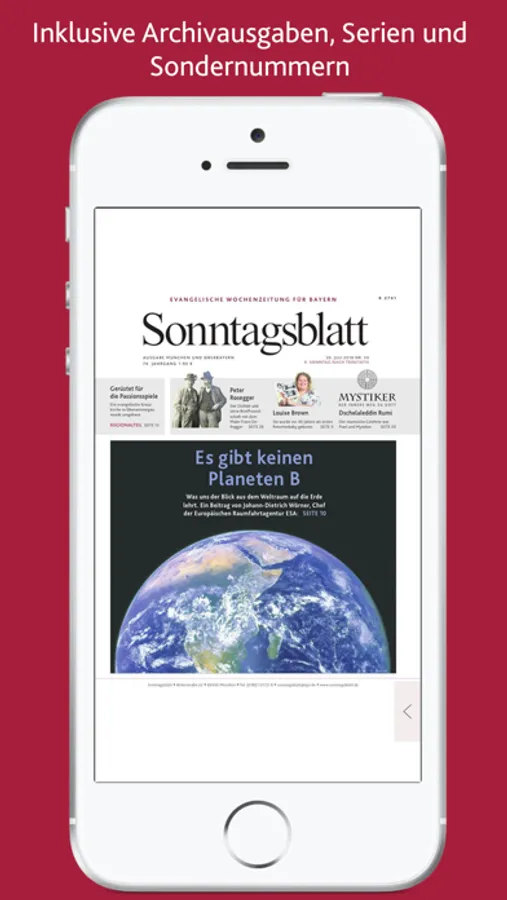 Das E-Paper Sonntagsblatt 360 Evangelisch ist eine Gesamtausgabe, alle sechs Regionalausgaben (Ansbach/Würzburg, Augsburg/Schwaben, München/Oberbayern, Nürnberg, Oberfranken und Regensburg) finden sich lesefreundlich und übersichtlich in einer Ausgabe