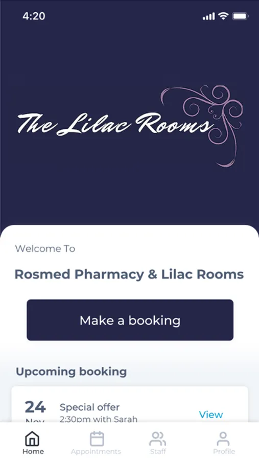 The Rosmed Pharmacy & Lilac Rooms app makes booking your appointments and managing your loyalty points even easier. You're just a few taps away from feeling good and looking great!